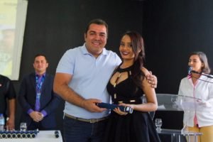 Prefeito de Curionópolis, Adonei Aguiar, entregando o certificado de conclusão para uma das formandas