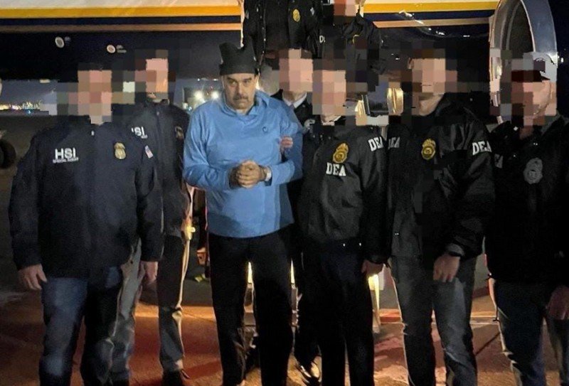 Imagens divulgadas mostraram Maduro com algemas e capuz, sendo conduzido pelas autoridades norte-americanas.